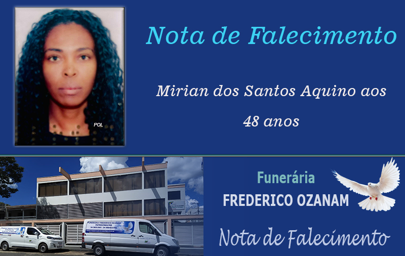 Faleceu nesta quinta-feira, 13 de novembro de 2025, em Patrocínio/MG, Srª Mirian dos Santos Aquino aos 48 anos.
