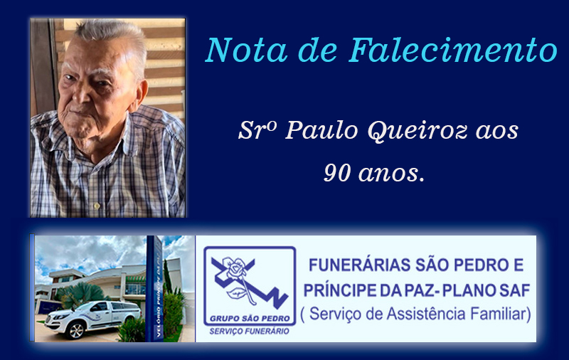 Faleceu nesta quinta-feira, 23 de janeiro de 2026, o Srº Paulo Queiroz aos 90 anos.