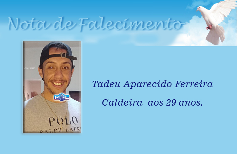 Faleceu neste sábado, 31 de janeiro de 2026, em Monte Carmelo/MG, Tadeu Aparecido Ferreira Caldeira aos 29 anos.