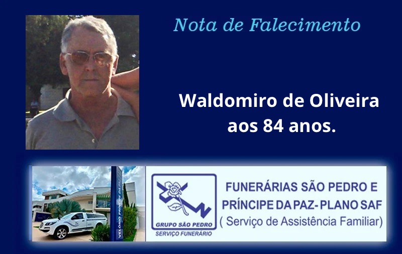 Faleceu hoje, dia 17/04/2026, em Patrocínio, Waldomiro de Oliveira aos 84 anos.