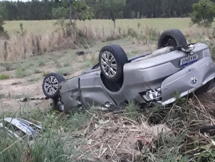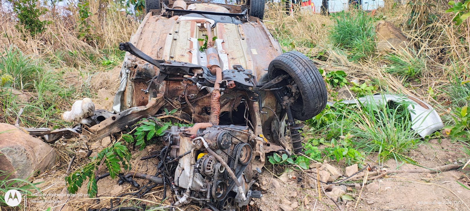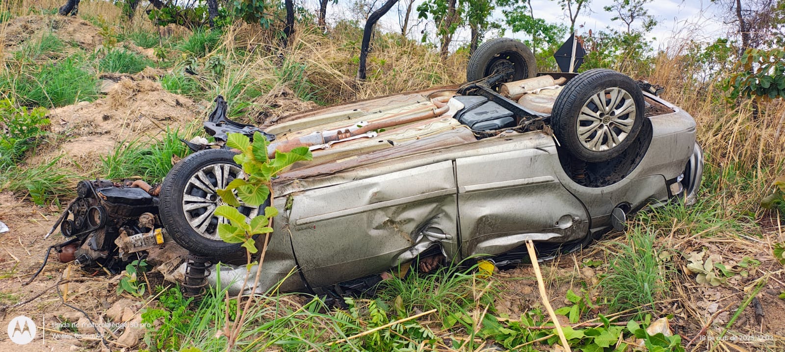 Os militares deslocaram-se até o local e depararam com um automóvel VW/Voyage, emplacado em Uberlândia, acidentado e com o conjunto pneumático voltado para cima, na área de domínio do DER.