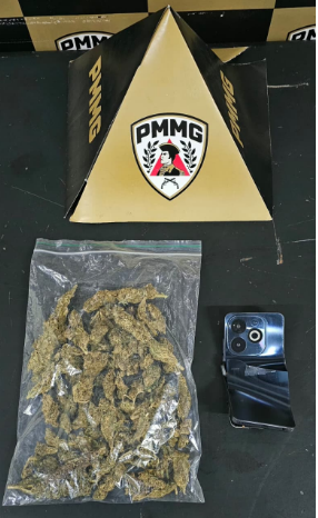 Durante a ação, o suspeito apresentou comportamento suspeito e danificou o próprio aparelho celular. Em busca pessoal, foi localizada substância análoga à maconha, com peso aproximado de 100 gramas, indicando possível destinação ao tráfico.