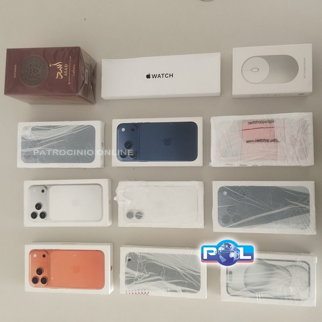 Os militares durante buscas no interior do veículo, localizaram dentro de sacolas e malas: 6 celulares Apple iPhone 17 Pro Max, 2 celulares Apple iPhone 16, 1 celular Apple iPhone 15, 1 mouse Mi Portable, 1 Apple Watch e 1 perfume Asad.