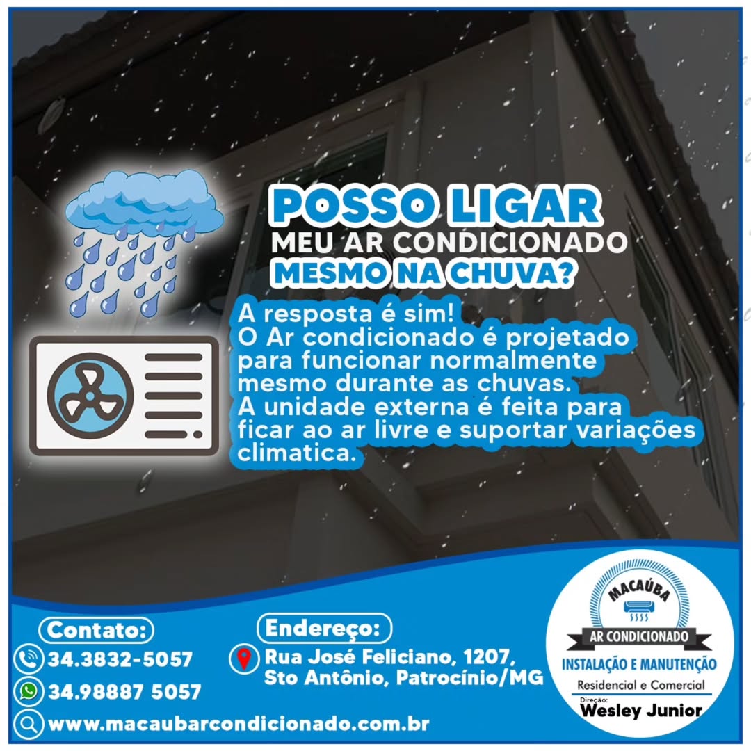 Agendamento através do: 34-3832-5057 34-9-8887-5057 ou pelo site www.macaubaarcondicionado.com.br