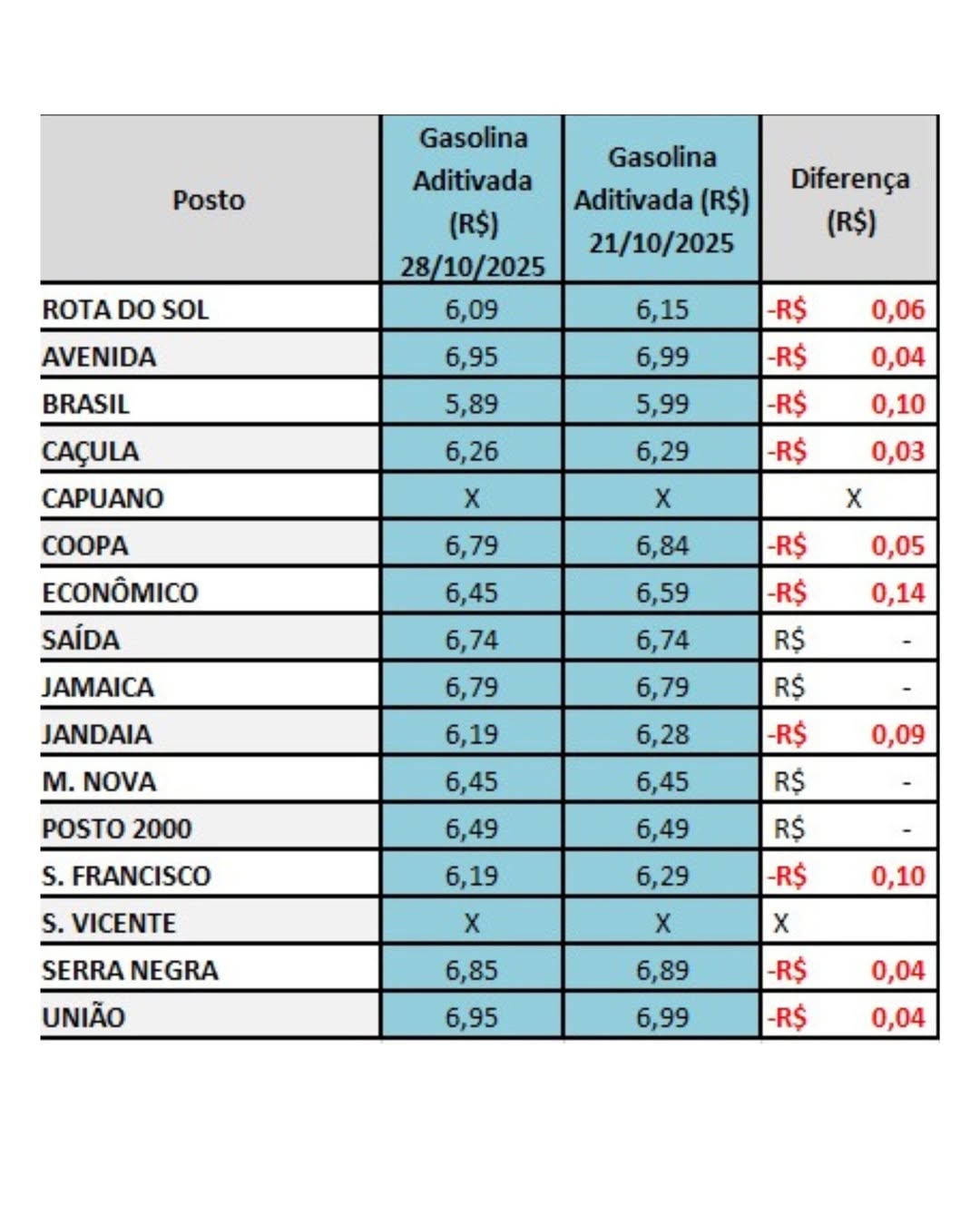 As quedas nos preços variaram de R$ 0,03 a R$ 0,14 por litro, beneficiando diretamente os motoristas e reforçando a economia local. Entre os postos que ajustaram os preços estão Posto Econômico, Brasil, Capuano, Jandaia e São Francisco.