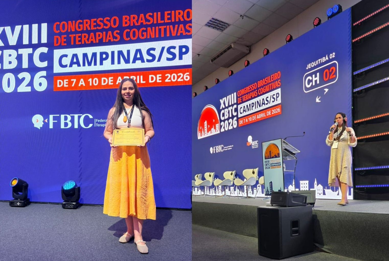 A psicóloga Daniela Aparecida dos Reis alcançou um importante marco em sua trajetória profissional ao receber o título de Terapeuta Certificada Cognitivo-Comportamental durante o XVII Congresso da Federação Brasileira de Terapias Cognitivas (FBTC), realizado em Campinas (SP), entre os dias 7 e 10 de abril de 2026. Reconhecido como o principal evento da área no Brasil, o congresso reuniu especialistas de todo o país para debates sobre práticas baseadas em evidências na Terapia Cognitivo-Comportamental (TCC).