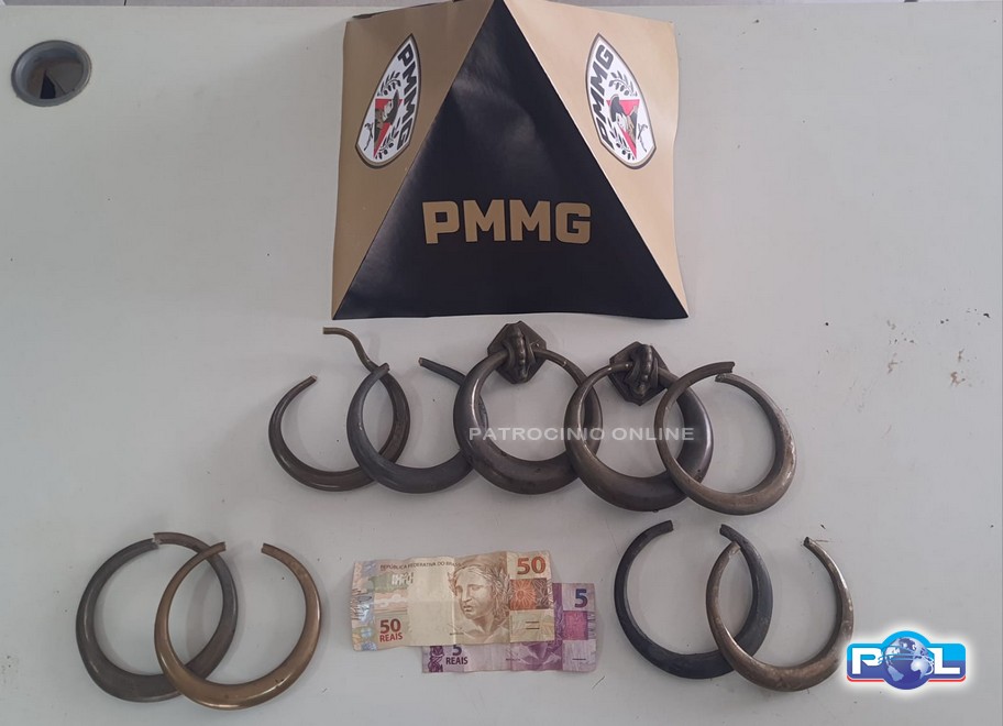 PM deslocou-se até o ferro-velho mencionado. No estabelecimento, os policiais localizaram os materiais provenientes do cemitério. Dois homens que estavam no local (G. L. C. S. M. e T. C. A. L.) foram identificados como os compradores do produto ilícito e receberam voz de prisão em flagrante pelo crime de receptação.