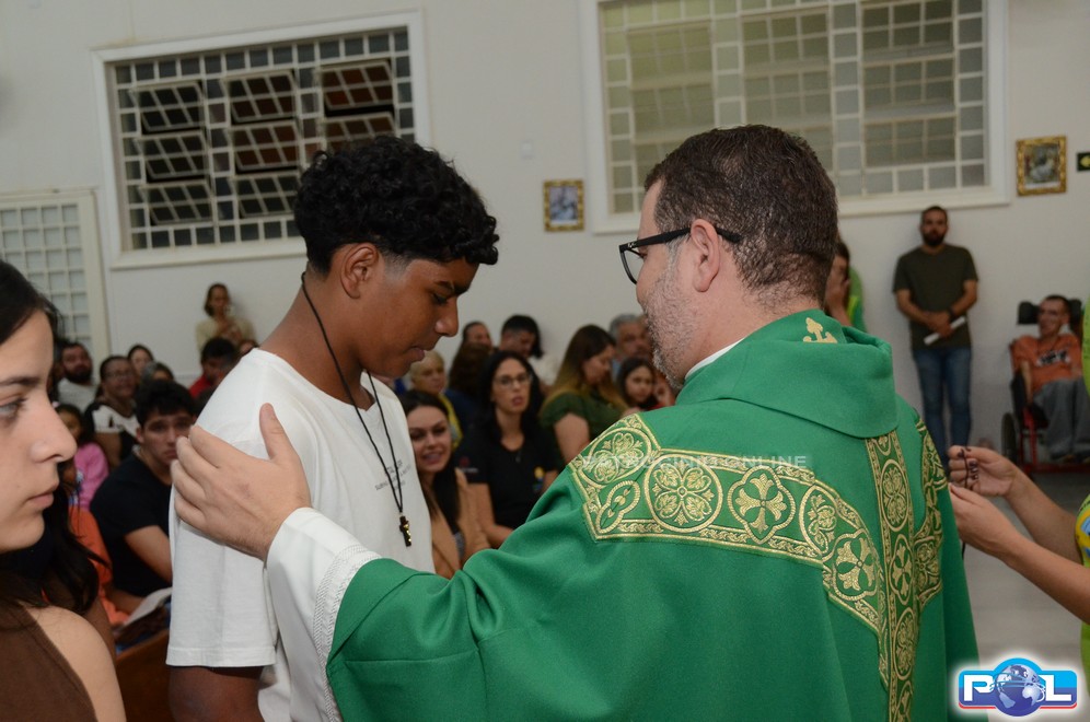 A Santa Missa foi presidida pelo pároco Marcelo Marins e teve a participação de seminaristas, ministros, acólitos, coroinhas, leitores e do coral do movimento.