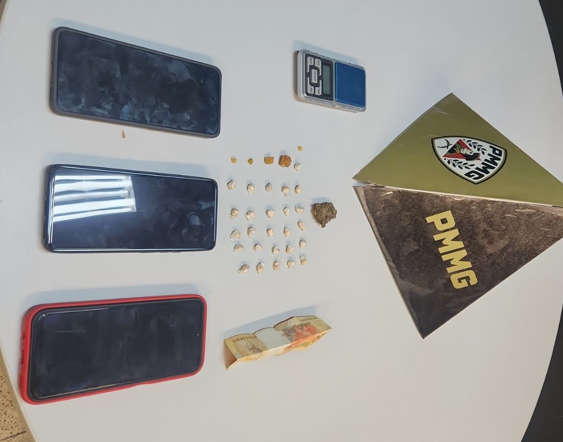 Durante buscas, os militares localizaram duas pedras brutas de crack, que poderiam render cerca de cinco porções menores, além de 26 pedras prontas para venda, uma balança de precisão, uma porção de maconha, R$ 20,00 e três celulares pertencentes aos suspeitos.