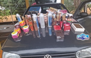 PMRv apreende carga de mercadorias contrabandeadas, importadas do Paraguai, no porta-malas de um VW Gol, avaliadas em R$ 30 mil, na MGC 497.