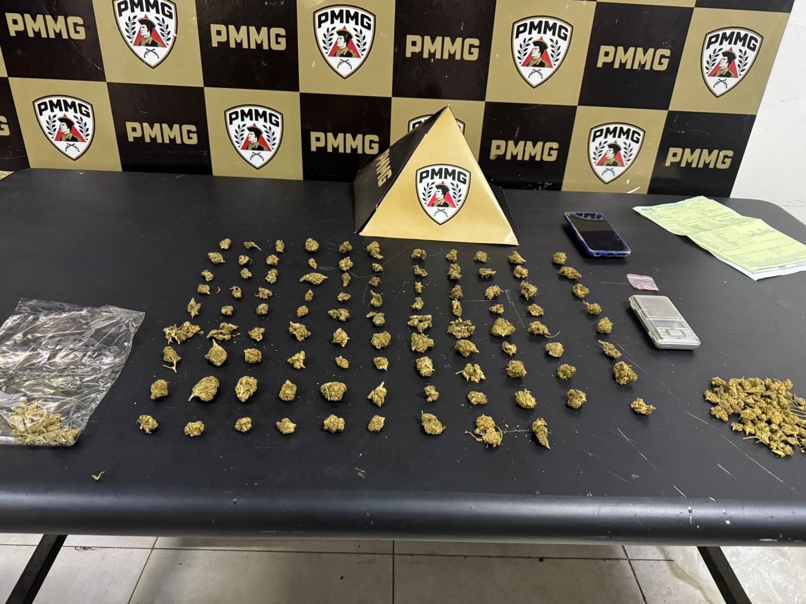 No dia 27/03/2026, às 21h24, durante patrulhamento na rua Augusta de Oliveira Marques, no bairro Planalto, em Uberlândia, a guarnição policial abordou um veículo Peugeot/206 Soleil 16-vermelho que tentou evadir-se ao perceber a presença policial. Durante a abordagem, foram localizadas 70 porções de substância análoga à flor de maconha no interior do automóvel. Em um imóvel vinculado à ocorrência foram localizadas ainda 25 porções de substância análoga a flor de maconha, um comprimido de ecstasy e uma balança de precisão. O suspeito de 29 anos foi preso em flagrante e encaminhado à Delegacia de Plantão, juntamente com o material apreendido e o veículo encaminhado ao pátio.
