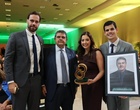 Viviane Rodrigues e Otávio Alves subiram ao palco levando um quadro com a foto do saudoso Celio Machado de Castro, reforçando a relevância de seu trabalho no período em que presidiu a Coopacredi e o impacto que teve para a entidade chegar a patamares tão elevados no segmento cooperativista.