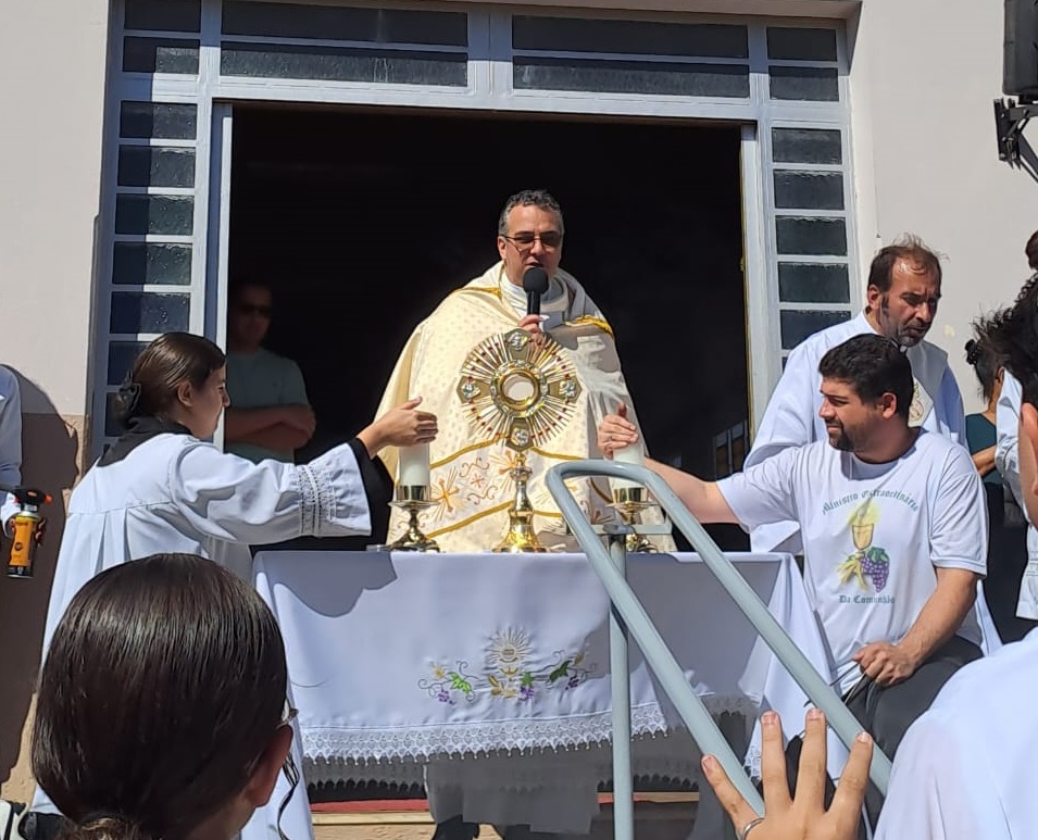 "A celebração campal foi presidida pelos padres Geraldo e concelebrada por Pedro, seguida de uma bela procissão com participação da banda Abel Ferreira pela Rua Presidente Vargas até a Praça da Igreja Santa Luzia, onde recebemos a bênção do Santíssimo.