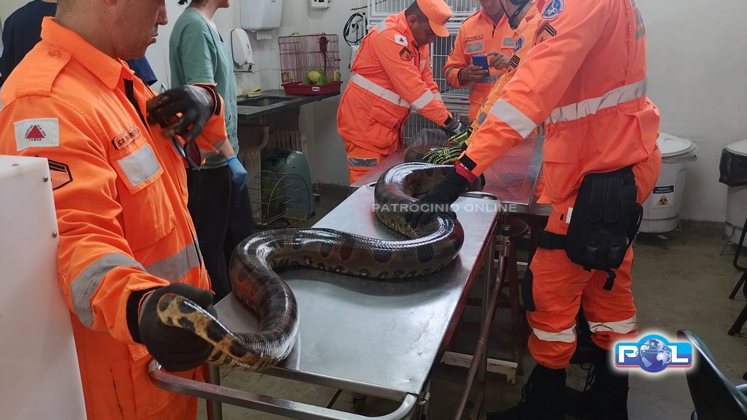 A serpente é adulta e possui aproximadamente 3 metros, conforme avaliação inicial.