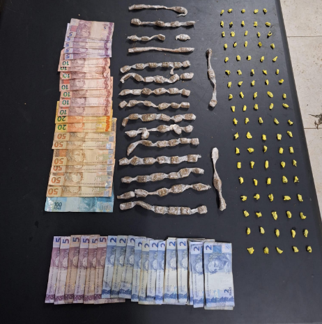 No local, as equipes visualizaram entorpecentes e abordaram dois indivíduos. Foram apreendidas 90 pedras de substância semelhante ao crack, 82 porções de substância análoga à maconha e a quantia de R$ 625,00 em espécie. Um dos abordados, de 47 anos, assumiu a propriedade das drogas e foi preso em flagrante. A outra envolvida foi liberada no local, após não serem constatados ilícitos em sua posse.