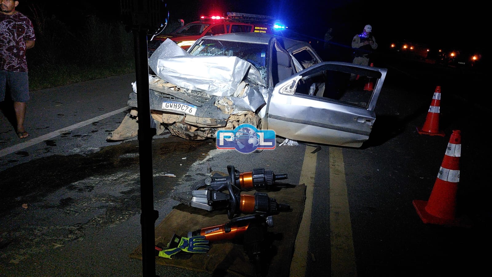 A carreta seguia sentido Araxá e o Gol, que entrou na contramão e provocou o acidente, seguia sentido Catiará.
