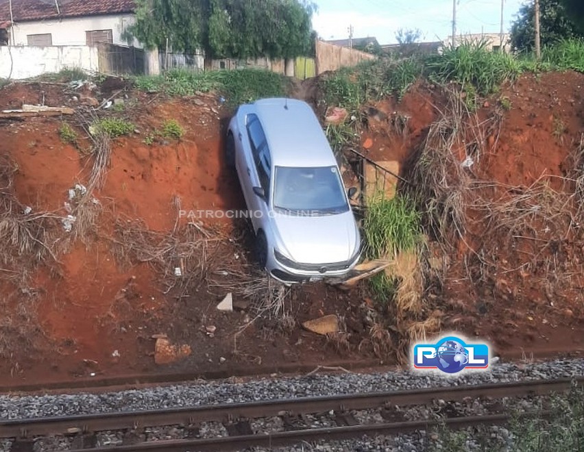PATROCÍNIO (MG) – A Polícia Militar foi acionada na manhã de quinta-feira, 1/1/26, após um veículo cair em uma ribanceira na Avenida Benedito Romão de Melo, no bairro Santa Terezinha, em Patrocínio, nas proximidades da passarela dos trilhos da linha férrea.