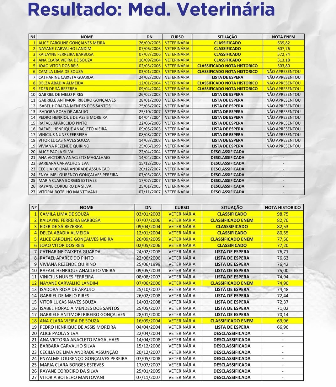 A lista completa de classificados, lista de espera e desclassificados pode ser consultada no site oficial do município, conforme o cronograma do programa.