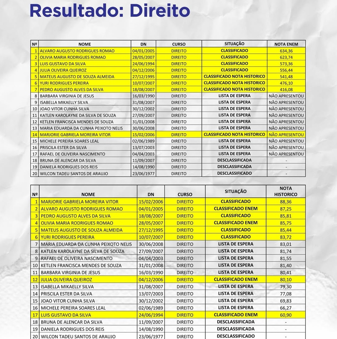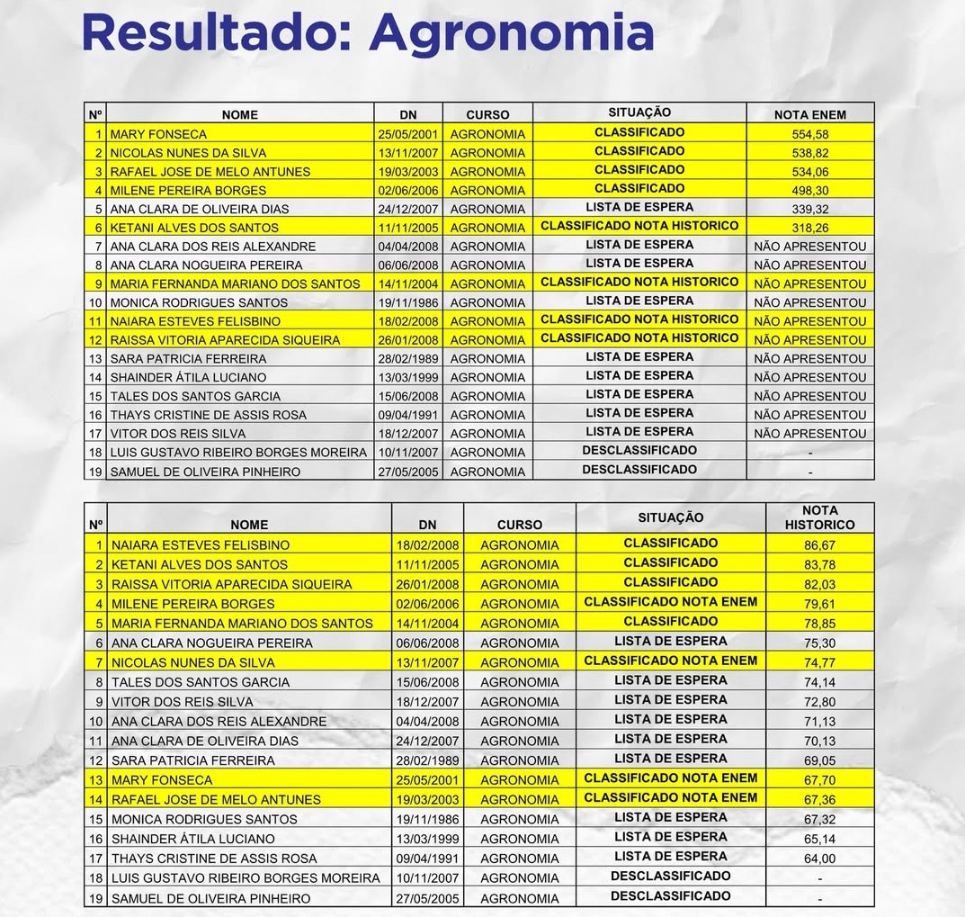 A seleção seguiu critérios sociais e acadêmicos previstos em edital, considerando desempenho no ENEM, histórico escolar e ações afirmativas, como vagas destinadas a egressos da EJA, pessoas com deficiência e candidatos autodeclarados pretos, pardos ou indígenas.
