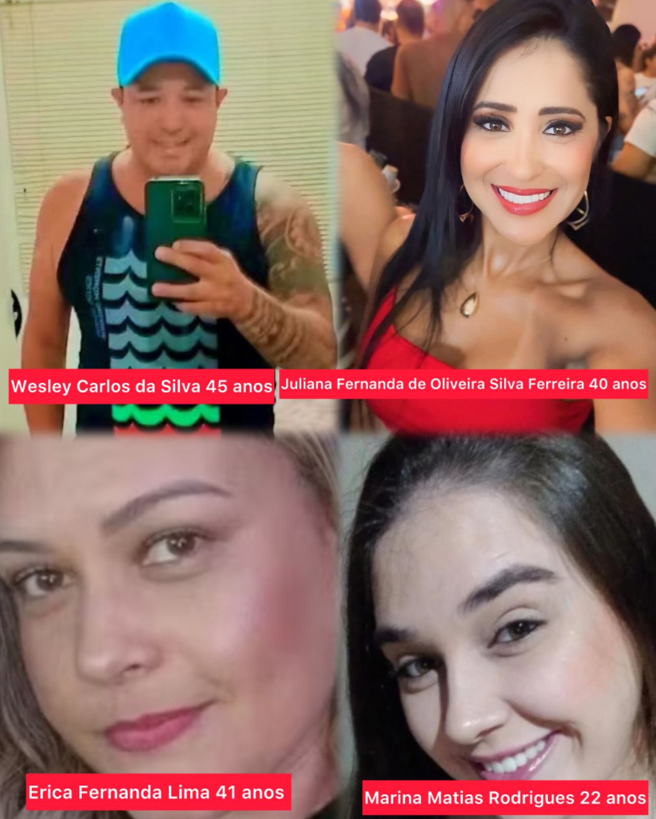 As vítimas identificadas são Wesley Carlos da Silva, de 45 anos; Juliana Fernanda de Oliveira Silva Ferreira, de 40 anos, ambos moradores de Franca (SP); Erica Fernanda Lima de 41 anos e Marina Matias Rodrigues de 22 anos.