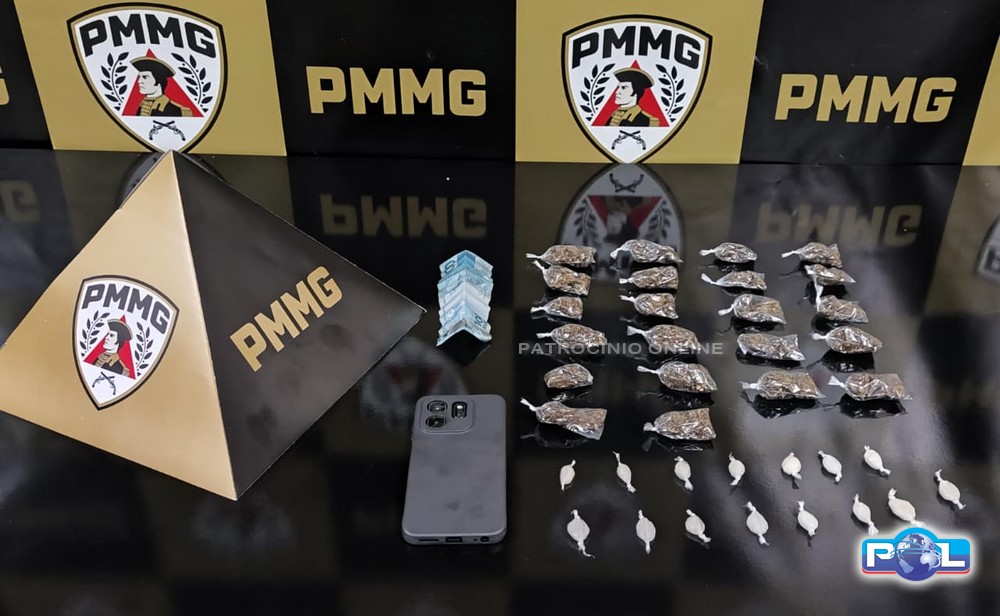 Os militares encontraram em sua posse porções de cocaína e de maconha, embaladas e prontas para comercialização.