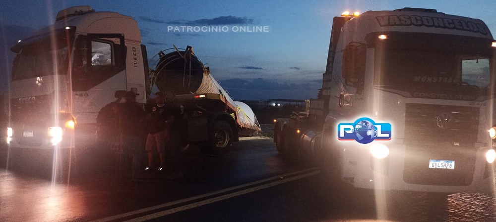 Os militares depararam no local com a pista totalmente interditada nos dois sentidos e os veículos envolvidos, sendo um caminhão trator M. Benz emplacado em Contagem/MG, que tracionava um semi-reboque emplacado em Betim/MG, que era conduzido por um homem de 37 anos, e um caminhão M. Benz emplacado em Presidente Olegário/MG, que era conduzido por um jovem de 26 anos.