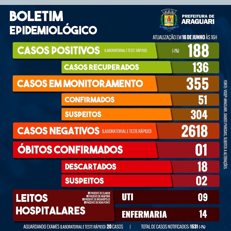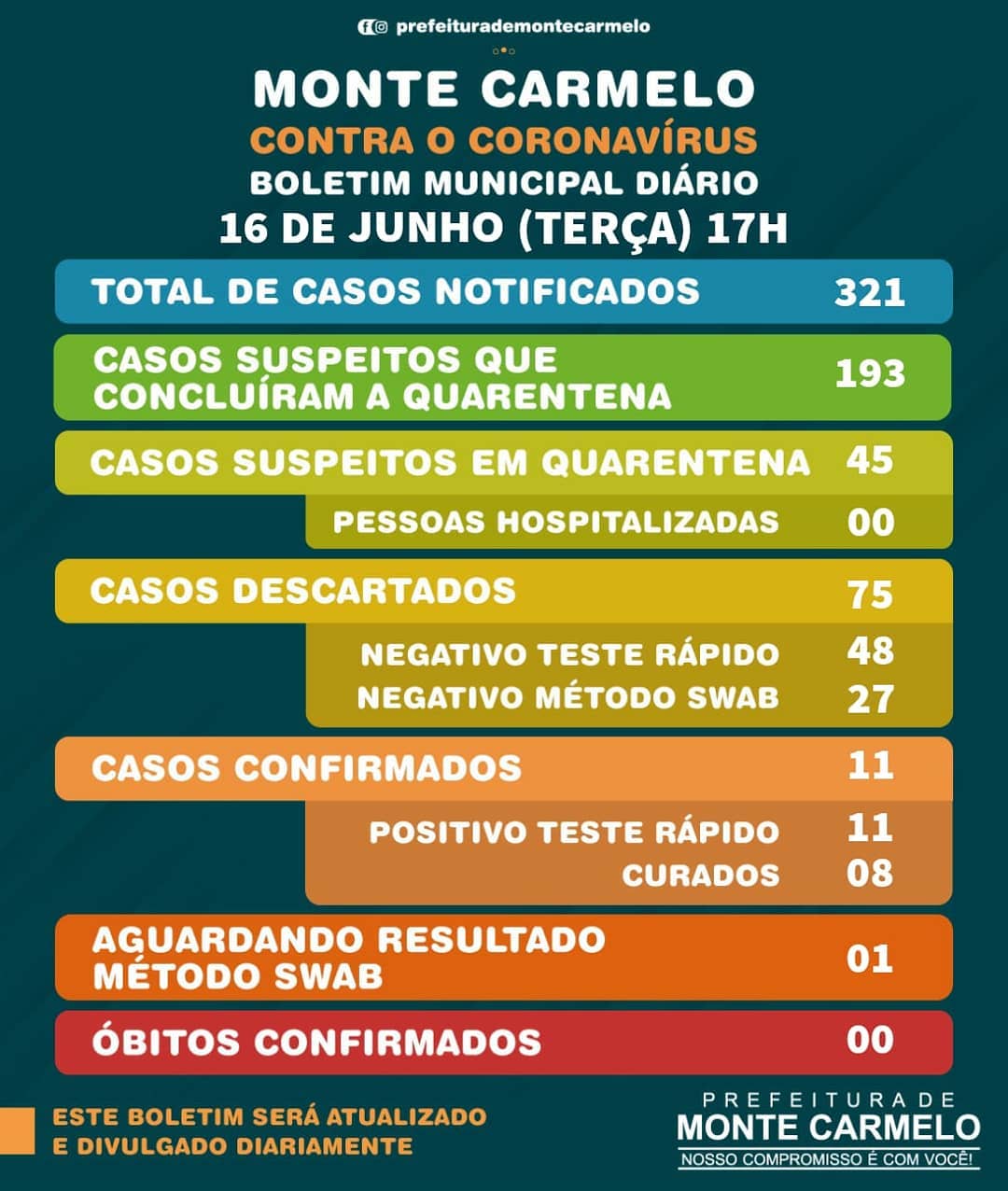 A atualização diária revela aumento de 3% no número de óbitos em relação ao total de ontem, que era de 43.959. Os novos casos confirmados representam acréscimo de 4% sobre o total de ontem, quando os dados do Ministério da Saúde registravam 888.271 pessoas infectadas.