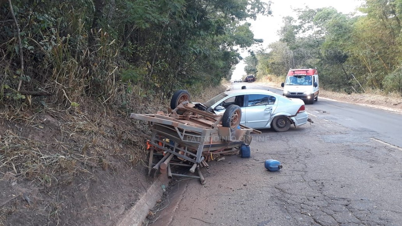 Os policiais rodoviários em contato com E.N.O., de 54 anos, este se apresentou como condutor da combinação veicular de carga relatou que transitava pela rodovia MG 190, sentido Monte Carmelo a Abadia dos Dourados, quando percebeu que os veículos GM Vectra e o reboque (carretinha) estavam desgovernados e em zig zague pela pista de rolamento, ocasião em que tentou desviar de tais veículos, o veículo GM Vectra colidiu na lateral esquerda do caminhão trator que ele conduzia, a combinação veicular de carga caiu na canaleta do lado direito da pista de rolamento, vindo a perder o controle direcional dos veículos e chocando em algumas árvores existentes na área de domínio do DER/MG.