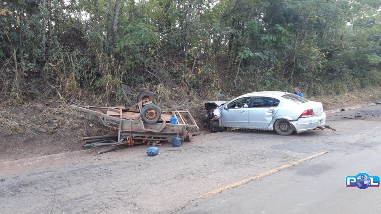 Os militares em contato com o condutor dos veículos GM Vectra e do reboque carretinha, A.F.L., de 60 anos, relatou que transitava pela rodovia MG 190, sentido Abadia dos Dourados a Monte Carmelo, e em dado momento o pneu dianteiro lado esquerdo do veículo GM/Vectra veio a estourar, instante em que perdeu o controle direcional dos veículos vindo a colidir lateralmente na combinação veicular de carga que transitava em sentido contrário ao seu.