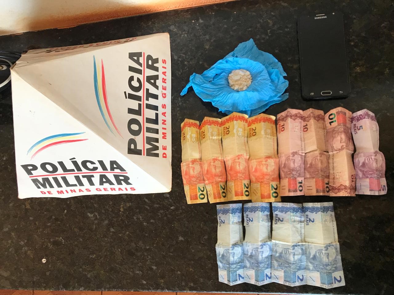 Durante busca pessoal em W. J. D. S. foi encontrado nos bolsos de sua calça R$ 183,00 reais de diversos valores e um invólucro contendo cocaína.
