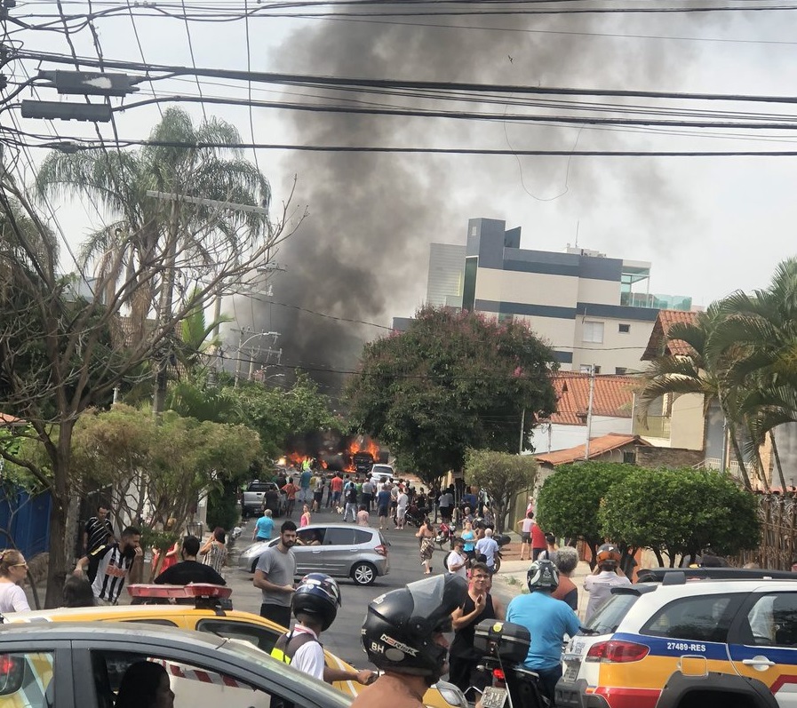 Ainda de acordo com a corporação, a aeronave caiu sobre carros no cruzamento das ruas Minerva e Belmiro Braga. O avião e os veículos pegaram fogo.