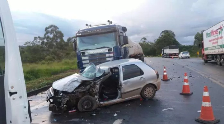 De acordo com a Triunfo Concebra, um veículo Fiat Pálio rodou na pista molhada e atingiu uma carreta que seguia no sentido oposto.