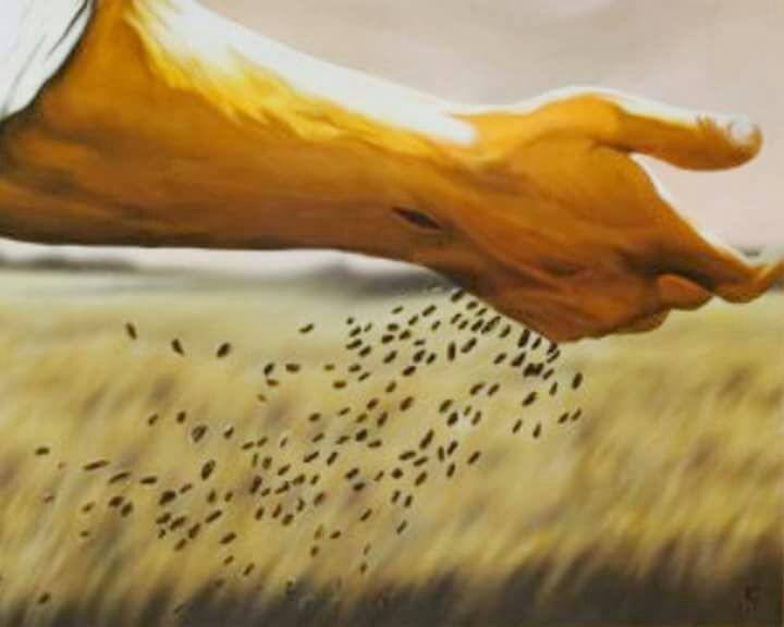 "[...] O semeador semeia a palavra. Alguns se encontram à beira do caminho, onde ela é semeada; apenas a ouvem, vem Satanás tirar a palavra neles semeada. Outros recebem a semente em lugares pedregosos; quando a ouvem, recebem-na com alegria; mas não têm raiz em si, são inconstantes, e assim que se levanta uma tribulação ou uma perseguição por causa da palavra, eles tropeçam. Outros ainda recebem a semente entre os espinhos; ouvem a palavra, mas as preocupações mundanas, a ilusão das riquezas, as múltiplas cobiças sufocam-na e a tornam infrutífera. Aqueles que recebem a semente em terra boa escutam a palavra, acolhem-na e dão fruto, trinta, sessenta e cem por um”.