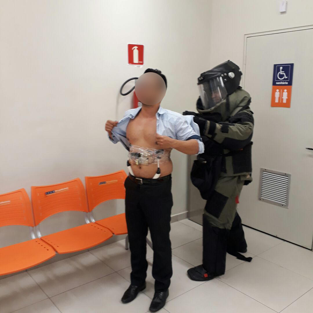 Uma equipe do Batalhão de Operações Especiais da Polícia Militar (Bope) foi acionada e retirou os explosivos do corpo do homem. Nenhuma quantia em dinheiro do banco foi roubada e nenhum suspeito de ter participado do sequestro foi localizado.