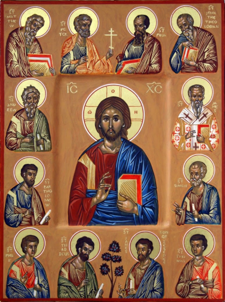 Depois, subiu ao monte e chamou os que ele quis. E foram a ele. Designou doze dentre eles para ficar em sua companhia. Ele os enviaria a pregar, com o poder de expulsar os demônios. Escolheu estes doze: Simão, a quem pôs o nome de Pedro; Tiago, filho de Zebedeu, e João, seu irmão, aos quais pôs o nome de Boanerges, que quer dizer Filhos do Trovão. Ele escolheu também André, Filipe, Bartolomeu, Mateus, Tomé, Tiago, filho de Alfeu; Tadeu, Simão, o Zelador; e Judas Iscariotes, que o entregou.