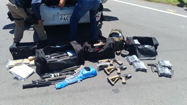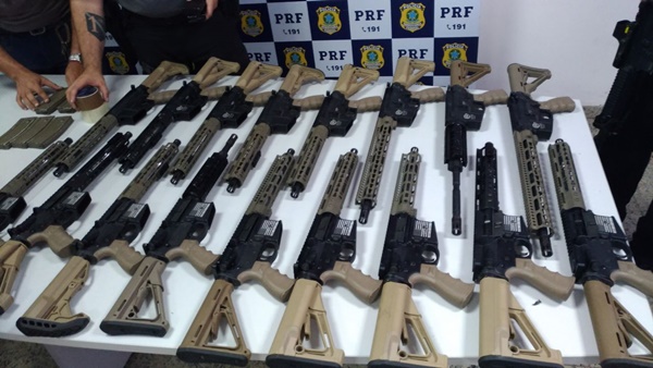 Policiais rodoviários federais e policiais da Delegacia Especializada em Armas, Munições e Explosivos (DESARME) apreenderam 19 fuzis, 41 pistolas, inúmeras munições, diversos carregadores e 54 tabletes de pasta base de cocaína na tarde desta quinta-feira (18). A ação policial ocorreu na divisa entre os Estados do Rio de Janeiro e São Paulo, através de levantamento de dados do serviço de inteligência da PRF, DESARME e Exército Brasileiro.