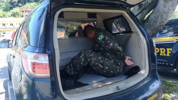 Os policiais conseguiram abordar o veículo suspeito e prender em flagrante o homem de 40 anos que vinha da cidade de Foz do Iguaçu, no Paraná. O suspeito é militar da ativa do Exército Brasileiro e dirigia um veículo clonado, com as mesmas características de uma viatura oficial, para ludibriar a ação dos agentes para tentar chegar até a região Metropolitana do Rio. O infrator, ainda, apresentou identidade funcional e intimidou os policiais dizendo que estava a serviço militar. Em seguida, os policiais rodoviários federais iniciaram buscas pelo veículo e encontraram os materiais ilegais escondidos por diversas partes do carro.