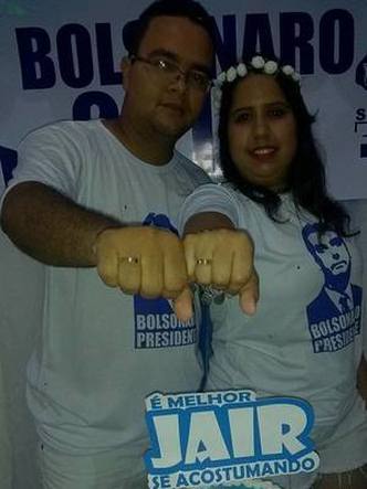 Tathiana, que, assim como o noivo é comerciante, conta que a ideia foi dele. “Ele gosta muito de política. Meu noivo decidiu fazer a homenagem a Bolsonaro por ser contra o discurso populista da esquerda representada pelo PT e defender uma economia liberal, valores da família e patriotismo entre outras coisas”, contou.