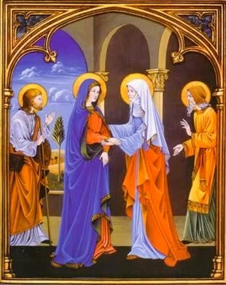 Maria se levantou e foi às pressas às montanhas, a uma cidade de Judá. [...] Ora, apenas Isabel ouviu a saudação de Maria, a criança estremeceu no seu seio; e Isabel ficou cheia do Espírito Santo. E exclamou em alta voz: "Bendita és tu entre as mulheres e bendito é o fruto do teu ventre. Donde me vem esta honra de vir a mim a mãe de meu Senhor? Pois assim que a voz de tua saudação chegou aos meus ouvidos, a criança estremeceu de alegria no meu seio. Bem-aventurada és tu que creste, pois se hão de cumprir as coisas que da parte do Senhor te foram ditas!”. E Maria disse: "Minha alma glorifica ao Senhor, meu espírito exulta de alegria em Deus, meu Salvador”.