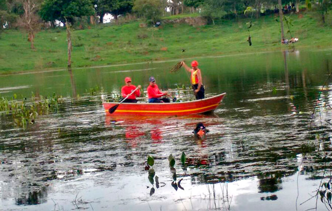 Os bombeiros foram para a represa e começaram as buscas. O Sargento Vanderson explicou que foram feitas buscas de barco e também por mergulho autônomo, mas como havia muita vegetação nas águas prejudicando a visibilidade, o corpo não foi localizado.