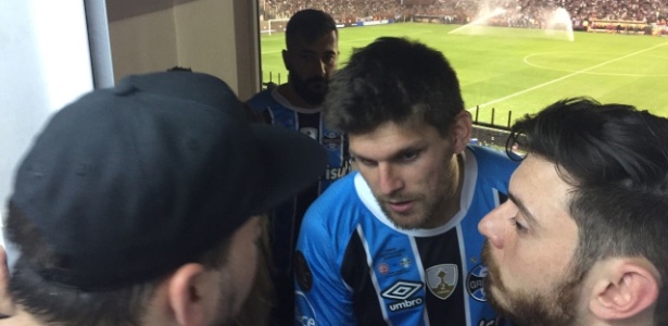 Jogadores do Grêmio ficam na cabine de imprensa