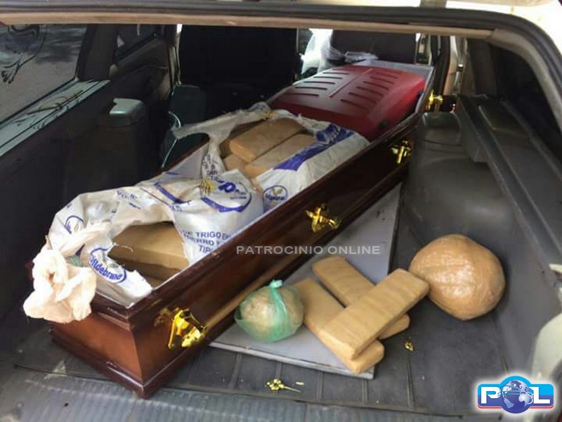 A polícia vai investigar qual era o destino de mais de 90 quilos de maconha e haxixe apreendidos na tarde desta sexta-feira na MG-255, em São Francisco de Sales, no Triângulo Mineiro, dentro de um caixão. A urna estava dentro de um carro adesivado com o nome de uma funerária falsa. O motorista de 25 anos foi preso e disse que saiu de Campo Grande e seguia para Uberaba. Mas, não soube dizer quem seria o dono do entorpecente.