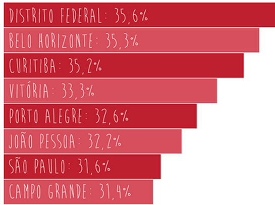 Uma pesquisa do Instituto Brasileiro de Geografia e Estatística (IBGE), em 2010, apontou Brasília como a capital do bullying. Segundo o estudo, 35,6% dos estudantes entrevistados disseram ser vítimas constantes da agressão. Belo Horizonte, em segundo lugar com 35,3%, e Curitiba, em terceiro lugar com 35,2 %, foram, junto com Brasília, as capitais com maior frequência de estudantes que declararam ter sofrido bullying alguma vez.