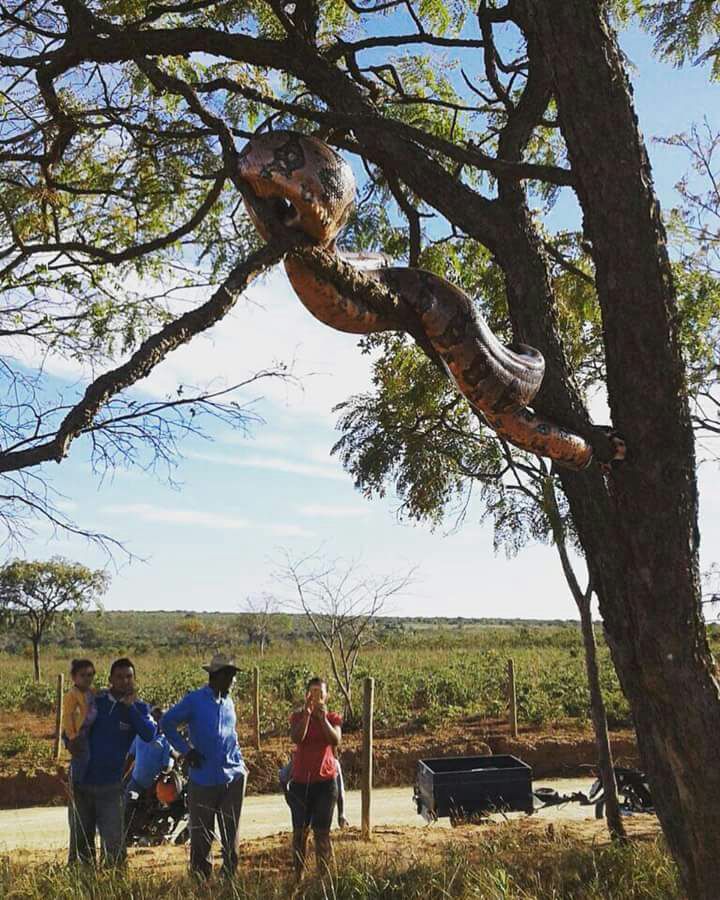 Uma bela e enorme Jiboía foi encontrada e fotografada por moradores da zona rural de São João da Ponte, no Norte de Minas, descansando tranquilamente em uma árvore.