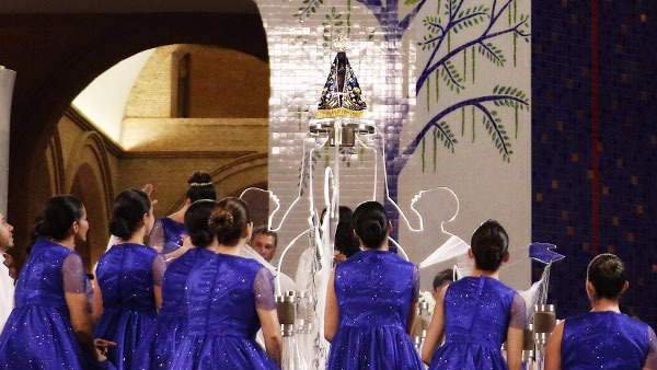 A música e a dança deram um toque especial para a celebração. Cerca de 40 bailarinos compuseram as coreografias que retrataram a devoção do povo brasileiro e a história de Nossa Senhora Aparecida, bem como o crescimento de sua veneração. E foi justamente uma dança que introduziu a solene coroação: a imagem recebeu a nova coroa – que pesa cerca de 300 gramas e foi elaborada com o ouro doado pelos fiéis, tendo ainda a porção de terra dos 26 estados brasileiros e do Distrito Federal – bem como o manto.