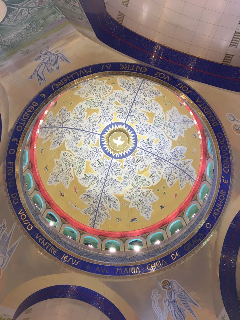 Após a coroação solene, muito aplaudida pelos fiéis presentes na celebração, os olhares voltaram-se para o alto da Basílica para apreciar a cúpula do altar central, até então coberta por tecido. A obra da cúpula inaugurada hoje começou em 2012 e a arte é de autoria do artista sacro Cláudio Pastro, falecido em outubro do ano passado. São 2 mil metros quadrados de mosaico e o centro da obra é a árvore da vida, rodeada por pássaros que se dirigem ao centro da árvore para ali se abrigarem.
