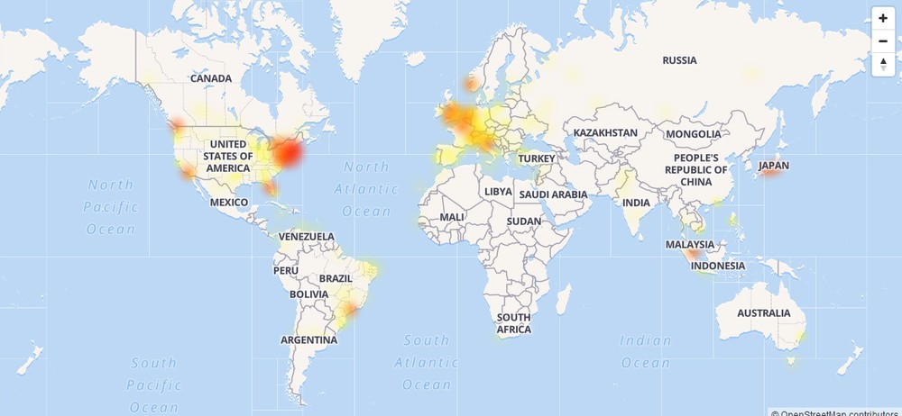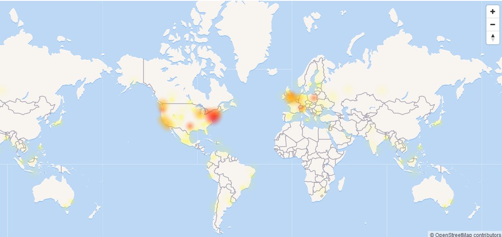 Um mapa em tempo real mostrado pelo site indica que o maior volume de queixas está concentrado nos Estados Unidos e na Europa Ocidental. Elas também aparecem no Brasil, com menor intensidade.