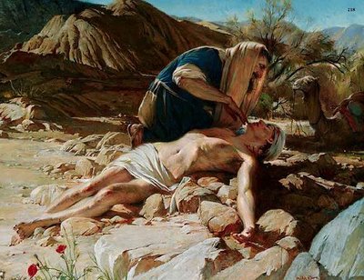 "Um homem descia de Jerusalém a Jericó, e caiu nas mãos de ladrões, que o despojaram; e depois [...] retiraram-se, deixando-o meio morto. Por acaso desceu pelo mesmo caminho um sacerdote, viu-o e passou adiante. Igualmente um levita, chegando àquele lugar, viu-o e passou também adiante. Mas um samaritano que viajava, chegando àquele lugar, viu-o e moveu-se de compaixão. Aproximando-se [...] levou-o a uma hospedaria e tratou dele. No dia seguinte, tirou dois denários e deu-os ao hospedeiro, dizendo-lhe: Trata dele e, quanto gastares a mais, na volta to pagarei. Qual desses três parece ter sido o próximo daquele que caiu nas mãos dos ladrões?”. [...] "Vai, e faze tu o mesmo”.