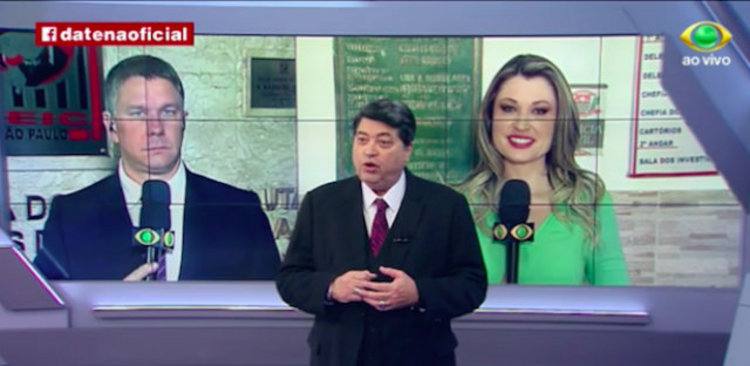 ''As próximas reportagens, até eu resolver esse pequeno probleminha aqui - que eu poderia dizer 'olha, uma experiência nova na televisão. Como eu confio muito nos meus repórteres e pelo adiantado estado da necessidade biológica, os dois repórteres vão apresentar o programa até eu conseguir voltar ao palco do trabalho. Se é que eu vou conseguir voltar. Vamos fazer a estreia agora no Brasil. Era o caso de eu chamar meu filho, Joel, que está no Pará, está longe'', disse Datena antes de sair do ar.