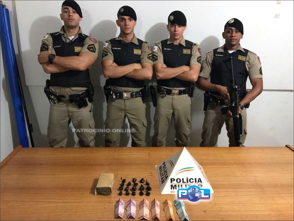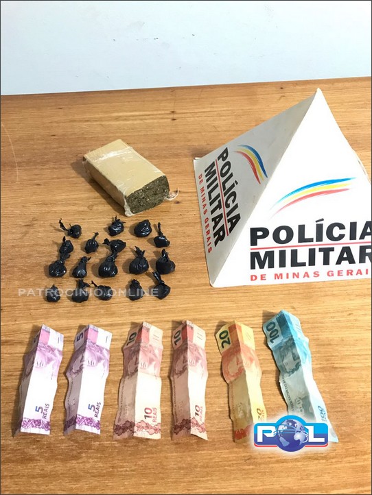 No dia 25/08, por volta das 18 horas, a Polícia Militar durante patrulhamento pela Rua Pernambuco, bairro São Geraldo, se deparou com autor W.M.A., 22 anos, que é alvo de várias denúncias de tráfico de entorpecentes no local, estando o mesmo em contato com um cidadão dentro de um veículo marca Ford/Escort, cor branca, de placas BKQ-8223, da cidade de Franca-SP, que ao notarem que seriam abordados, empreenderam fuga, jogando algo no chão, contudo, foram alcançados, e durante as buscas pessoais, foi encontrado uma certa quantia em dinheiro, em notas de diversos valores, comum no tráfico.